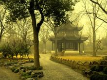 Шесть часов утра. По помещениям, как далекий гром, прокатывается звук бронзового гонга, призывающего на службу. С трудом заставляю себя выбраться из-под вороха одеял. Предстоит выйти на утренний холод, и я малодушно медлю, разглядывая вышитую золотом ширму и небольшой альков в стене, украшенный икебаной и шелковым свитком с иероглифами. А если раздвинуть легкую перегородку из рисовой бумаги, то взору откроется японский сад - густые заросли азалий и бамбука, крохотный пруд, карликовые деревья и алеющие сливы. Церемония начинается на рассвете.